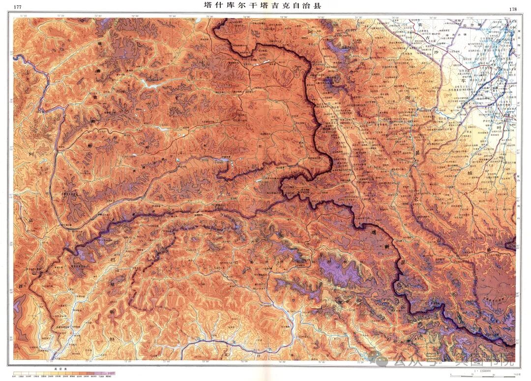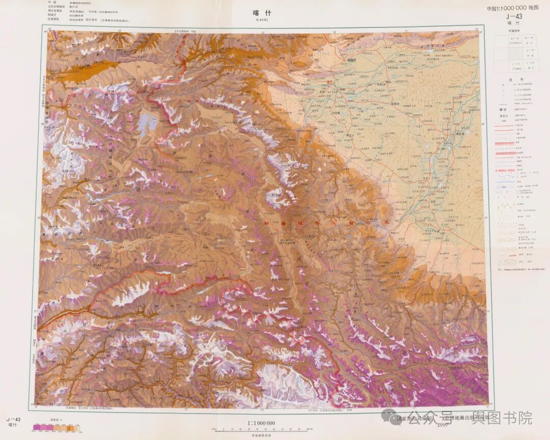 (瓦罕走廊区域地形图,中国1比100万地形图-喀什幅)