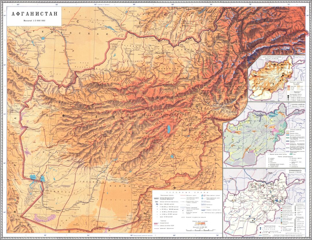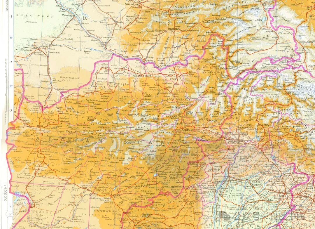 (阿富汗地图,俄制。瓦罕走廊在阿富汗最东端,也是阿富汗最封闭的地方)