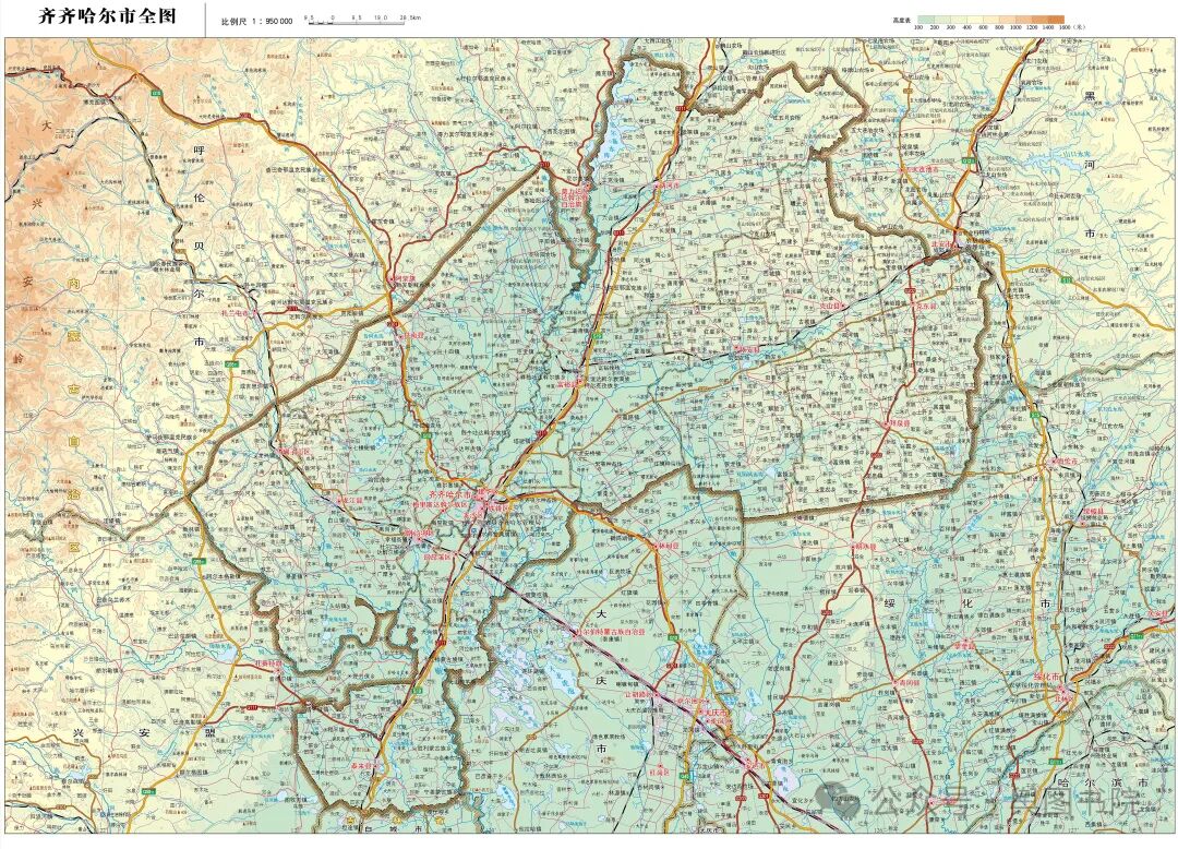 (齐齐哈尔市地形图,在齐齐哈尔南部,兴安,白城,以及大庆一带,由于地势低洼,排水不畅,形成诸多沼泽型内流区)