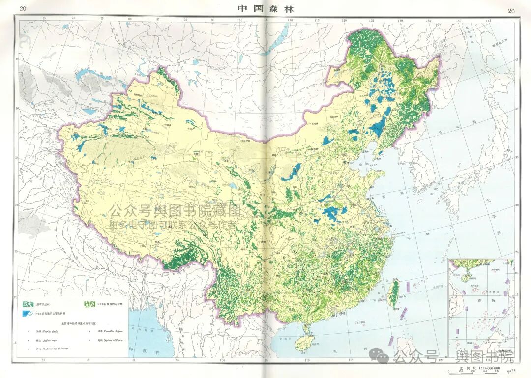 (中国森林分布,东北地区松花江流域是森林最密集区域)