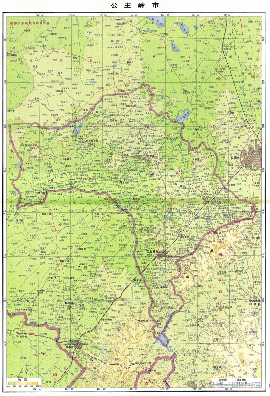 (松辽岗丘-公主岭附近地图,松辽之间的分水岭是主要大河中最没有存在感的)