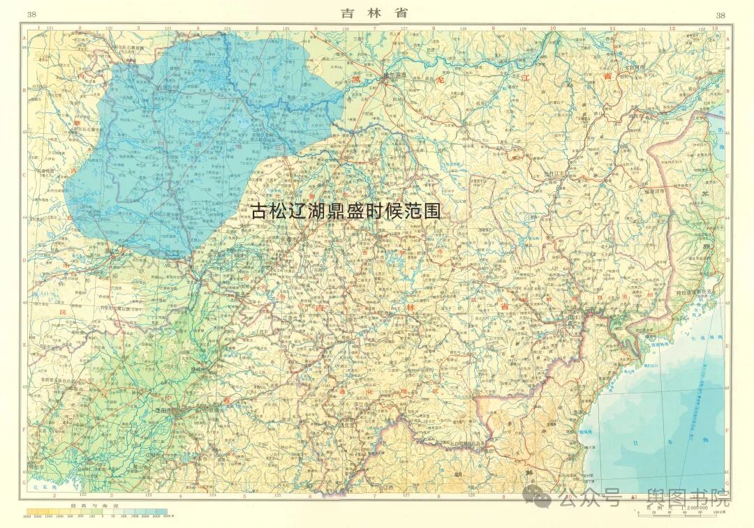 (古松辽湖示意图,底图:1982年吉林省地形图,更多松花江变迁介绍戳链接:舆图鉴赏:东北之犁松花江)