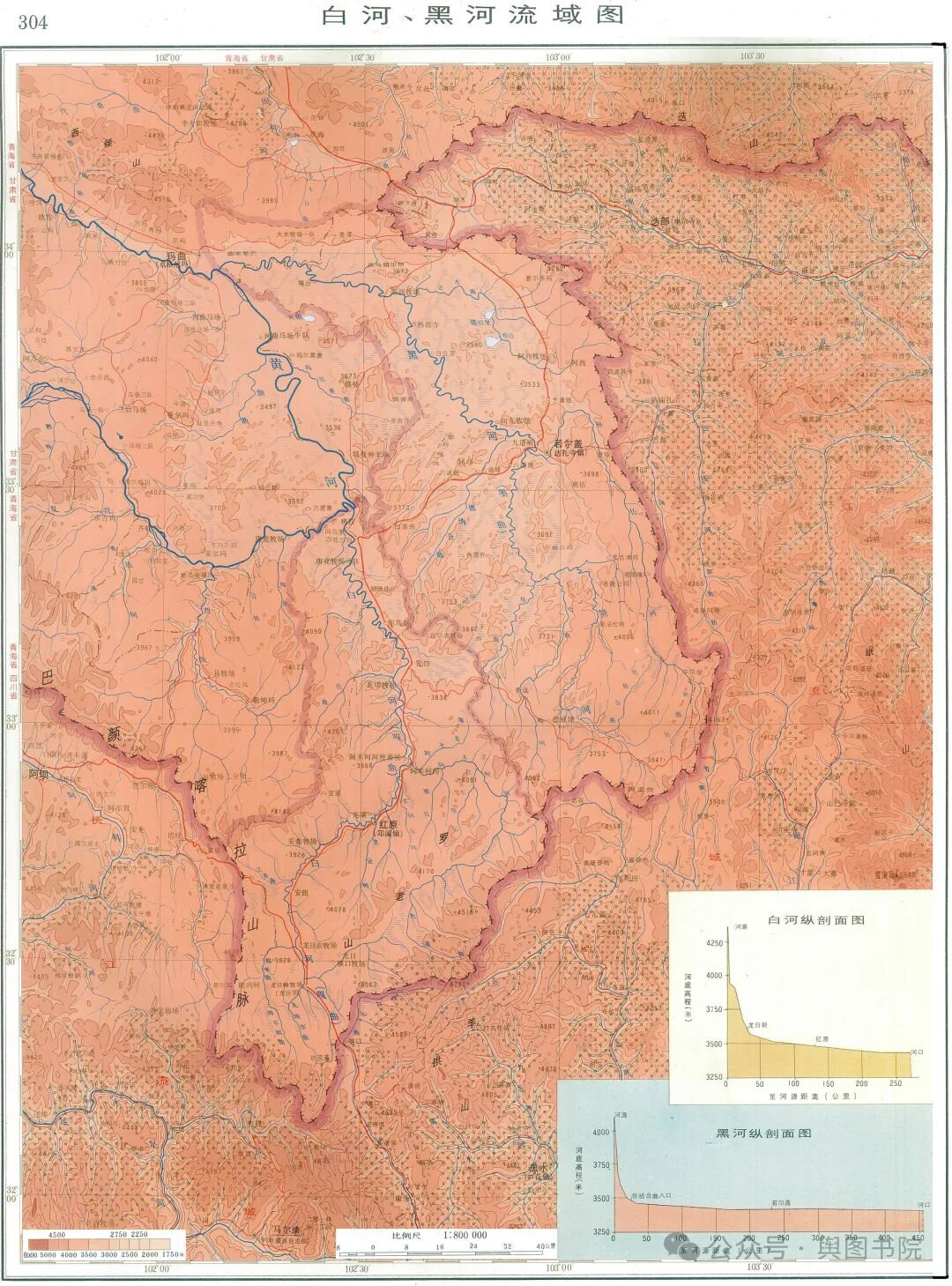 (若尔盖湖区域地形图-黑河白河流域图,出自黄河流域地图集)
