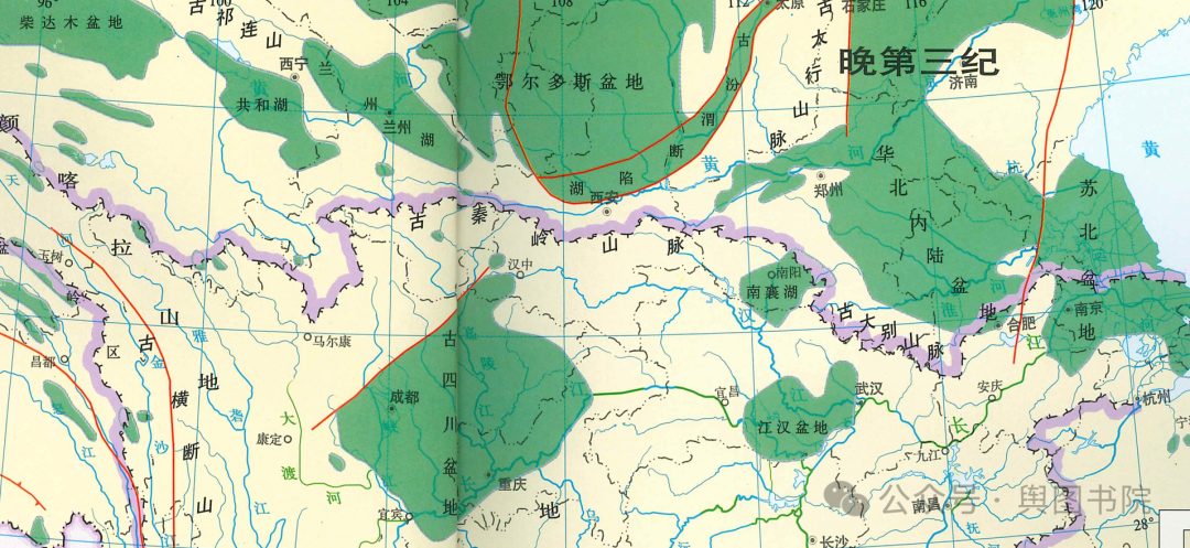 (晚第三纪古地理图,共和湖,兰州湖,南襄湖,汾渭湖等大湖都形成于这个年代,更多黄河变迁戳链接:黄河从哪里来?一分钟读懂黄河前世今生)