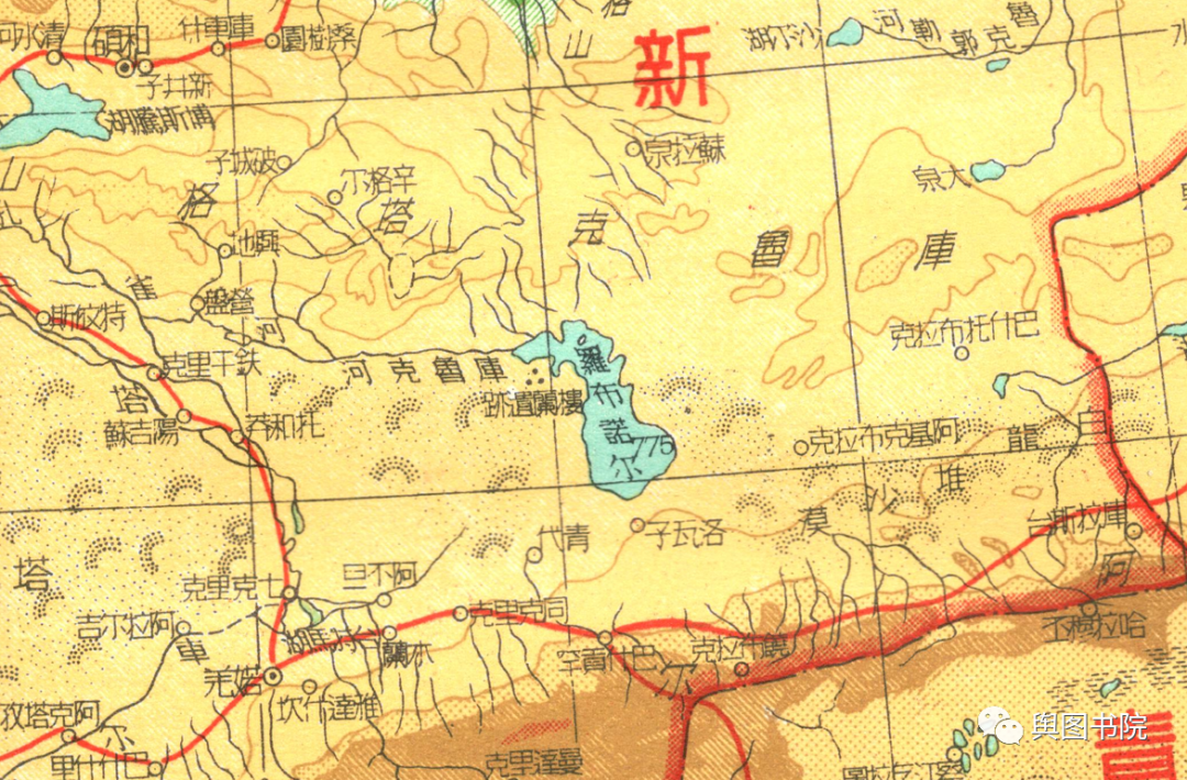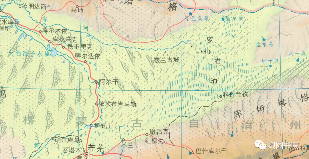 (罗布泊,1992年,此时湖水在地图上已经彻底消失。更多罗布泊变迁,戳链接了解:建国后中国地图有哪些变化?自然地物篇)