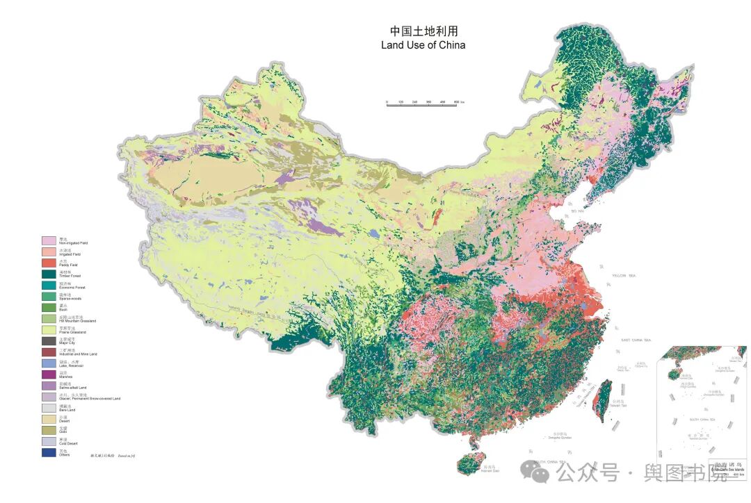 (中国土地利用图,西部北部国土广大,大量土地却无法有效利用)