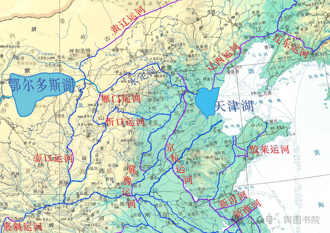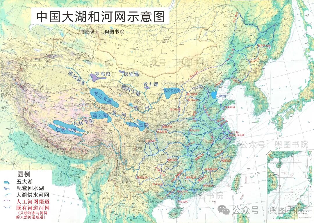 (超级河网的基础,中华版五大湖示意图。五大湖和中华水网可以充分收集中国西南出境淡水,是应对气候变暖水塔失能的最有利手段,也是改造国土的最直接最高效途径)