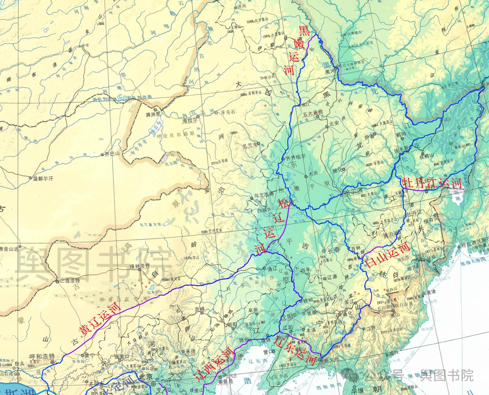 首先是东北地区。东北地区水网骨干是黑龙江-松花江。第一段工程是引黑济嫩,这是航运和补水排水一体化工程,除了打造航道以外,还能解决东北地区的洪涝,干旱,盐碱化等问题。松辽运河是区域内建设的骨干运河水网,集引水,航运,排盐等职能一体化,向南输水并升级辽河航道。另一个重要的引水和航运系统是辽东运河,沟通辽河和鸭绿江,并将鸭绿江丰沛水资源西引,辽西运河,是沟通东北和关内的重要通道。除此之外,牡丹江,白山等运河,构成长白山丘陵地区水网,实现东北联动。最后,辽河梯级抬水和黄辽运河,是沟通东北和内蒙古重要纽带,也是内蒙古重要的补水工程。