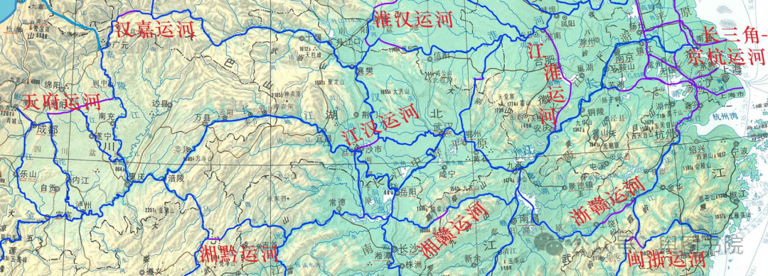 中华河网是根据中国特色地理环境展开的。首先,中国地势分为三个阶梯,每一级阶梯都在水网中扮演着不同角色,总的来说,第一级阶梯担负水塔职能,实现水资源高效涵养;第二级阶梯担负分水调水中转站职能,将宝贵的淡水用最低的成本输送到缺水但不缺平地,光热资源的地方;第三级阶梯将水用好,建设超级河网,发挥水资源潜能,最大限度发挥水系的各种职能。超级河网的基础建立在超级大湖之上,大湖的详细介绍参考往期图文:再造中华超级大湖,改造国土的宏伟构想