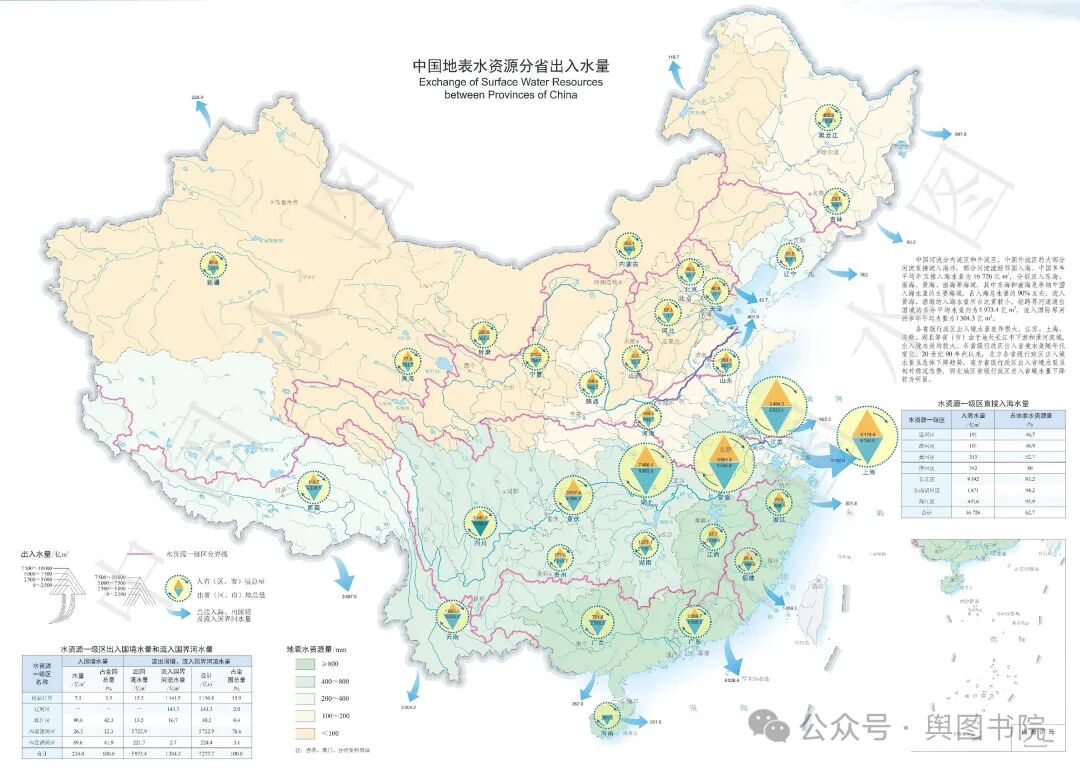 (中国各省出入境水资源示意图,西藏流出国界水资源近3500亿立方米,云南也高达2200亿立方米,这两个省流出国界水资源超过5000亿立方米,超过半条长江的流量)