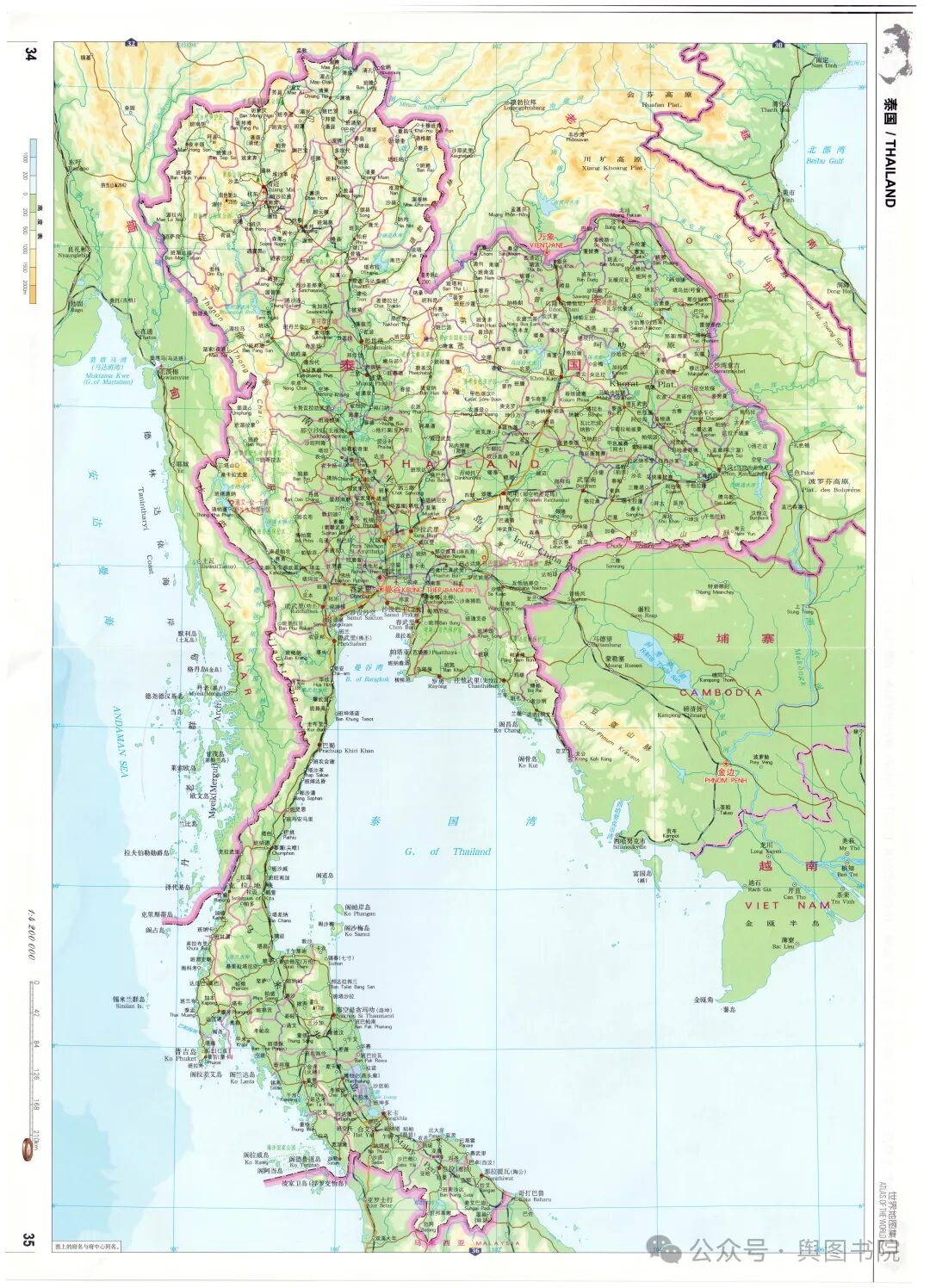 (泰国地形图,中泰虽然陆地不相邻,但在南海和东南亚范围的合作广泛)