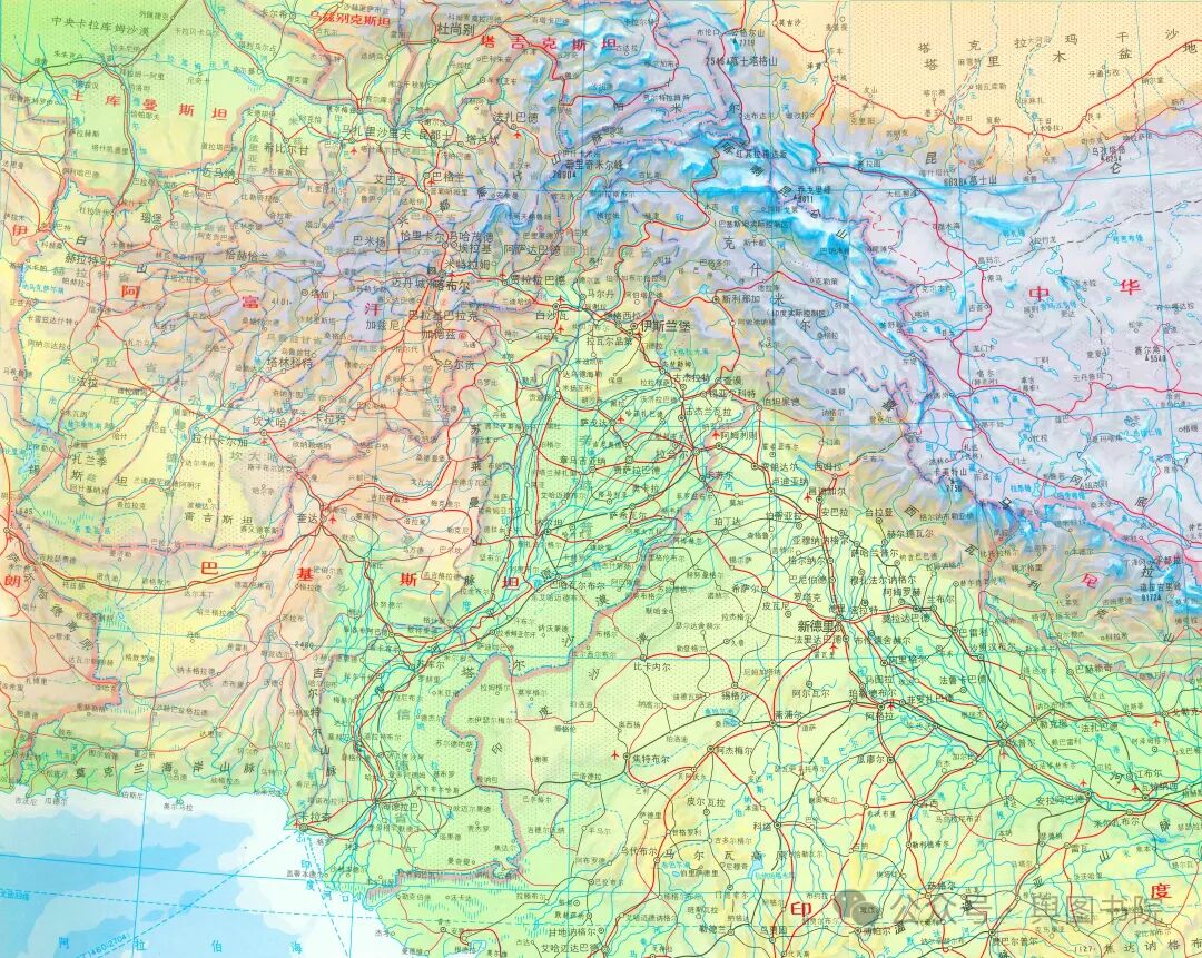 (印度地形图,中印是世界上两个最大的人口国,中印的发展是对人类发展最大的贡献)