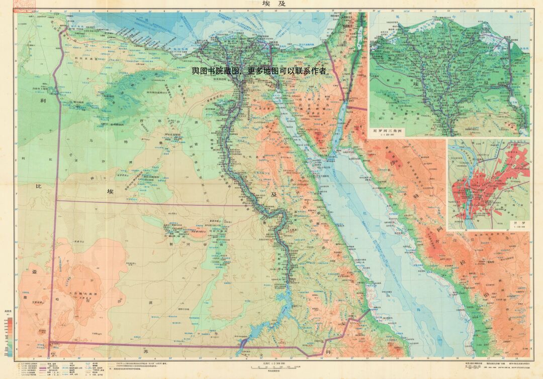 (埃及地形图,西部的大片低于海平面的洼地,可以变成湖泊调蓄周围气候)