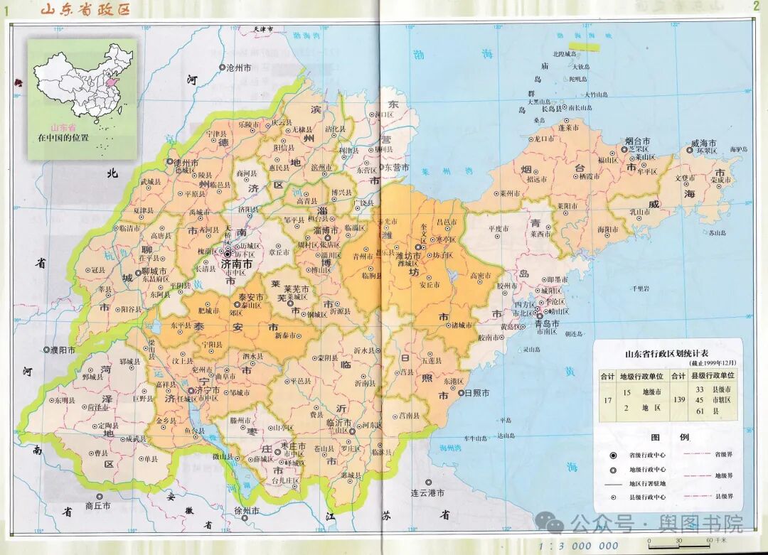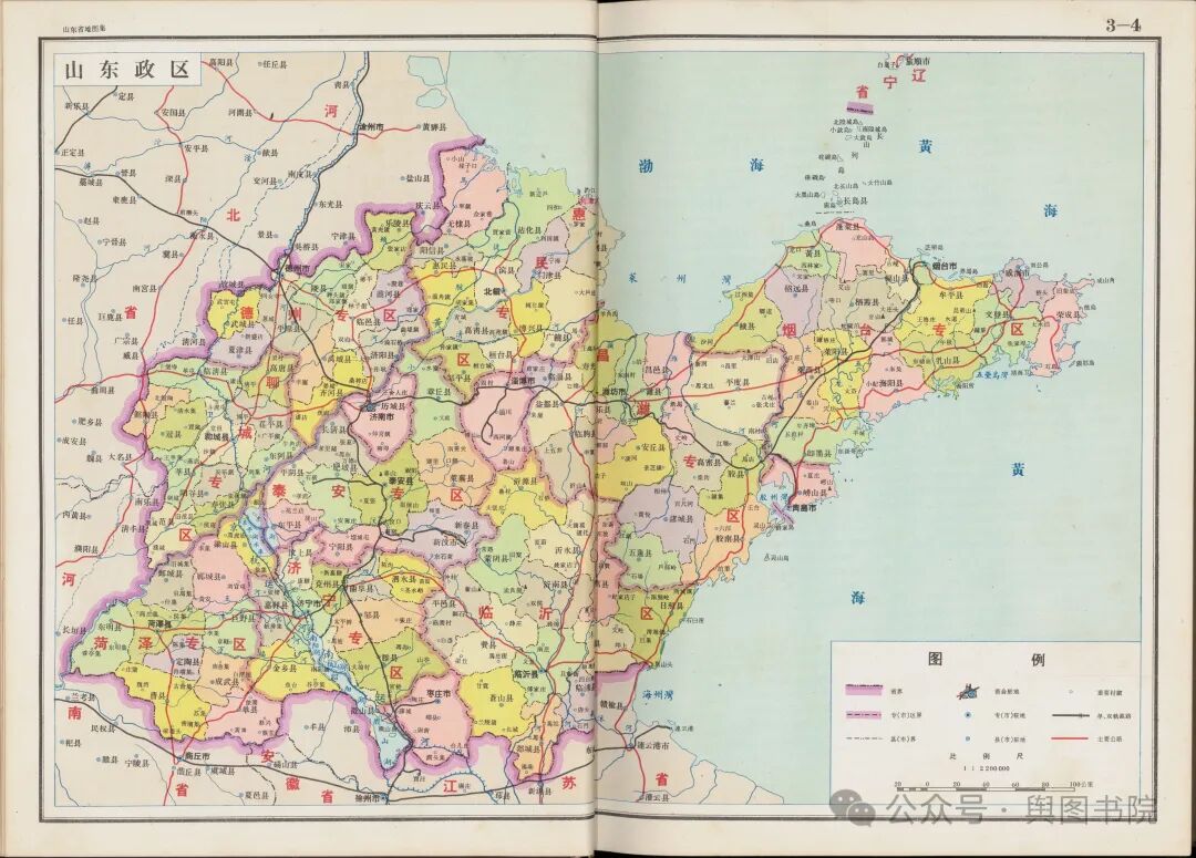 1954年,山东专区调整较多,全省分为11个专区,1个工矿区,另有4省辖市(济南,烟台,青岛,临清),6专辖市(济宁,淄博,潍坊,威海,德州,张周)。临清作为老牌省辖市,到今天却只是县级市。更多内容戳链接:舆图纪实——1954年的新华本国地图