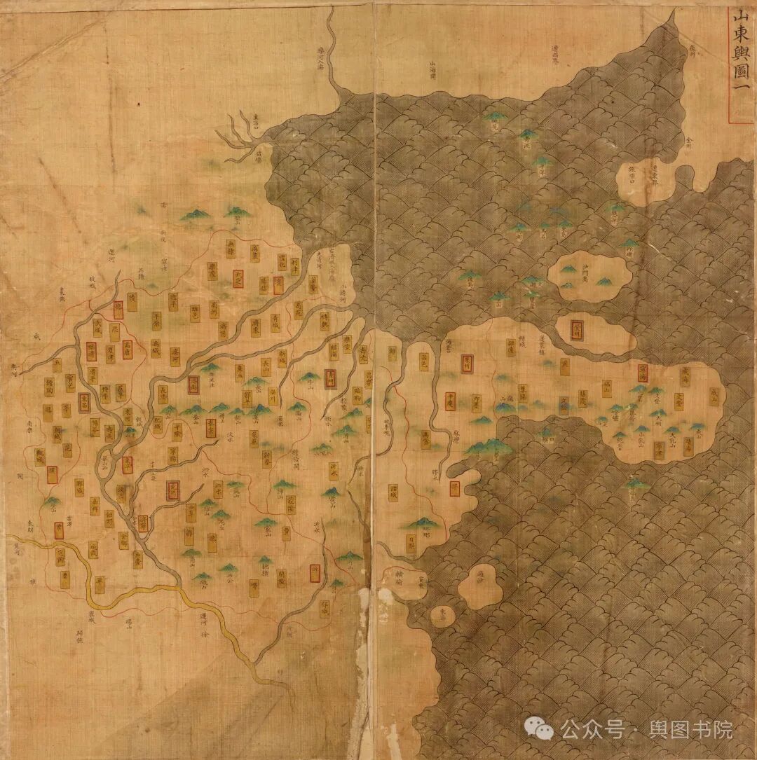 此时山东轮廓和今天差别较大,西部运河以西区域划出,南部多了江苏北部区域。