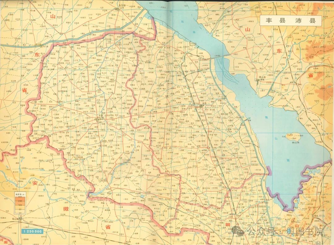 (江苏省地图集,丰县,沛县地图。图中南四湖仍以鼎盛湖面绘制,并且未绘制省界)