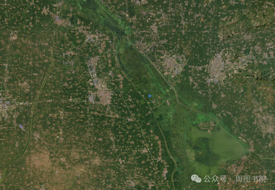 (南四湖中南部卫星图,可见湖泊已经瓦解,南北的微山湖和独山湖不再以湖面连接,而且自身水面也急剧萎缩)