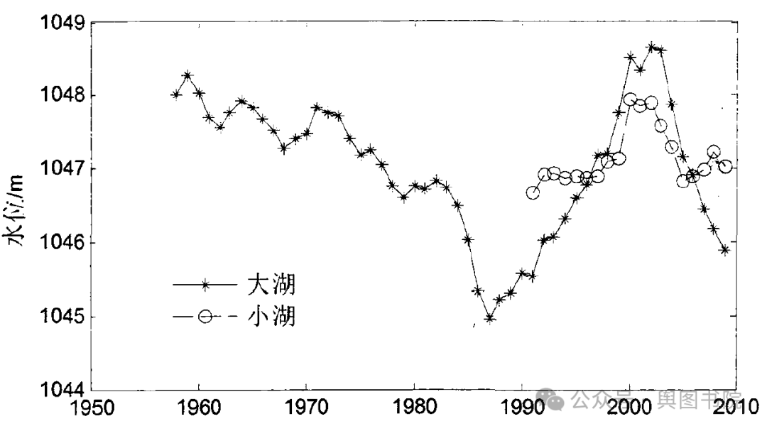 (博斯腾湖水位变化,当水位1047米时,面积大约1060平方公里)