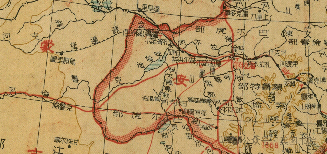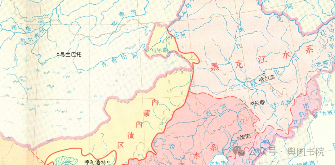 (早期地图将呼伦湖标记为内陆咸水湖,其流域也标记为内流区)