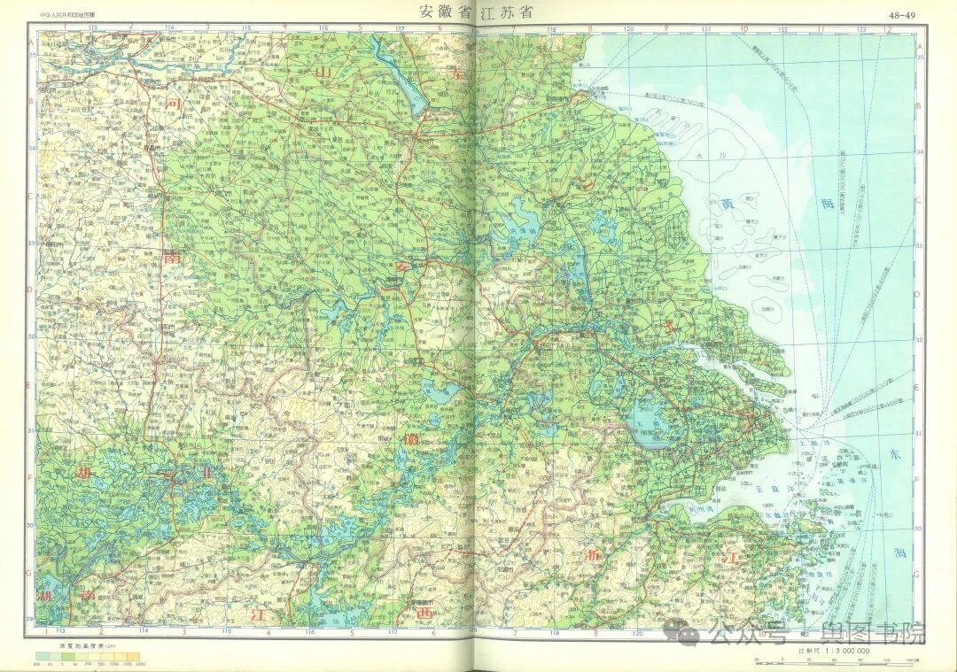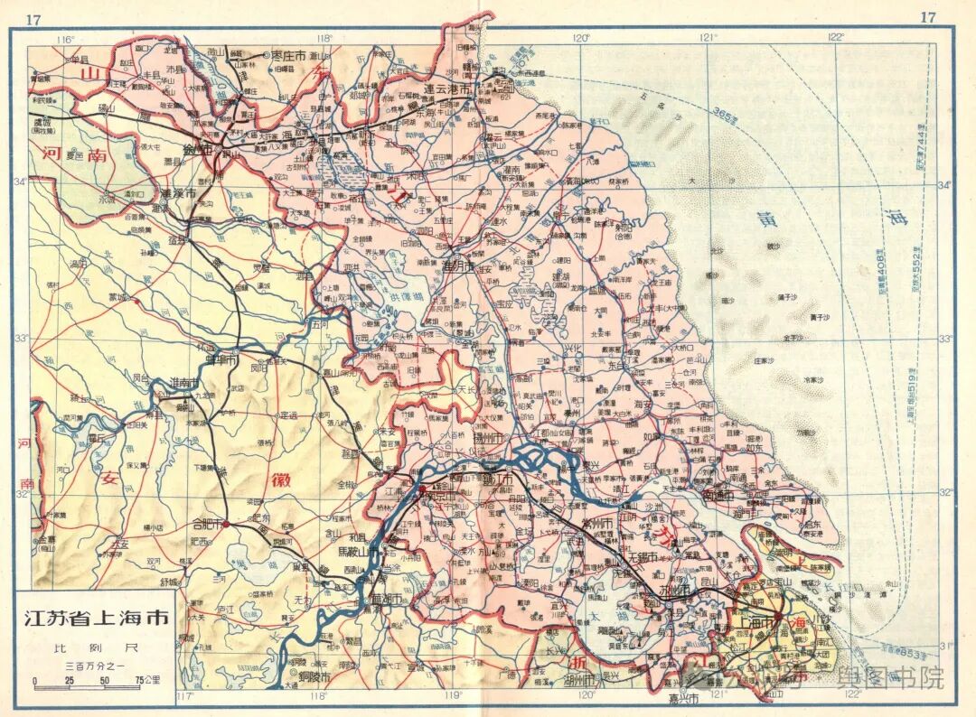 1957年地图可以看到,江苏省界和之前有一些调整,主要是和安徽有四个县变动。更多内容戳链接:舆图纪实—1957年的地图看中国
