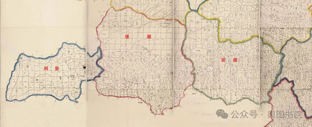 在1832年地图可以看出,西藏分为前藏,后藏,阿里三个区域。由于当时测绘技术较为薄弱,所以地图误差相对较大,阿里的位置严重变形。通过历史地图集,可以参考其相对位置。