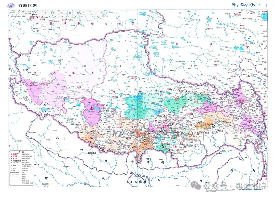 (西藏政区图,西藏辖6个地级市1个地区)