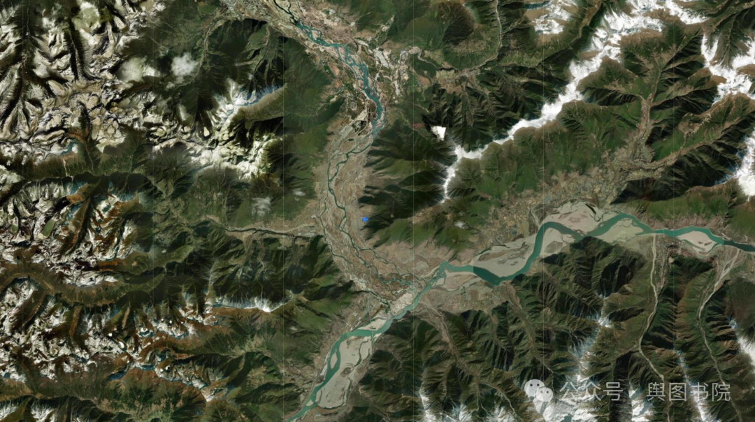 (林芝附近卫星图,山绿谷无绿)
