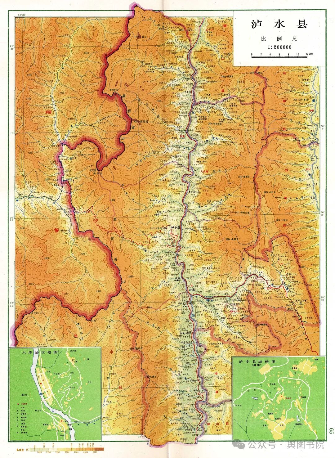我们在地图上还能发现,泸水境内有两个中心,分别是六库和鲁掌。这两个城镇就是当初的两个土千总中心,鲁掌在民国时期成为县城中心。六库则在1973年时候成为地级中心,当年怒江州州治由碧江县知子罗迁往六库,从此六库完成了逆袭。泸水县则保持了一段时间的一县两城(县城鲁掌,州城六库)。