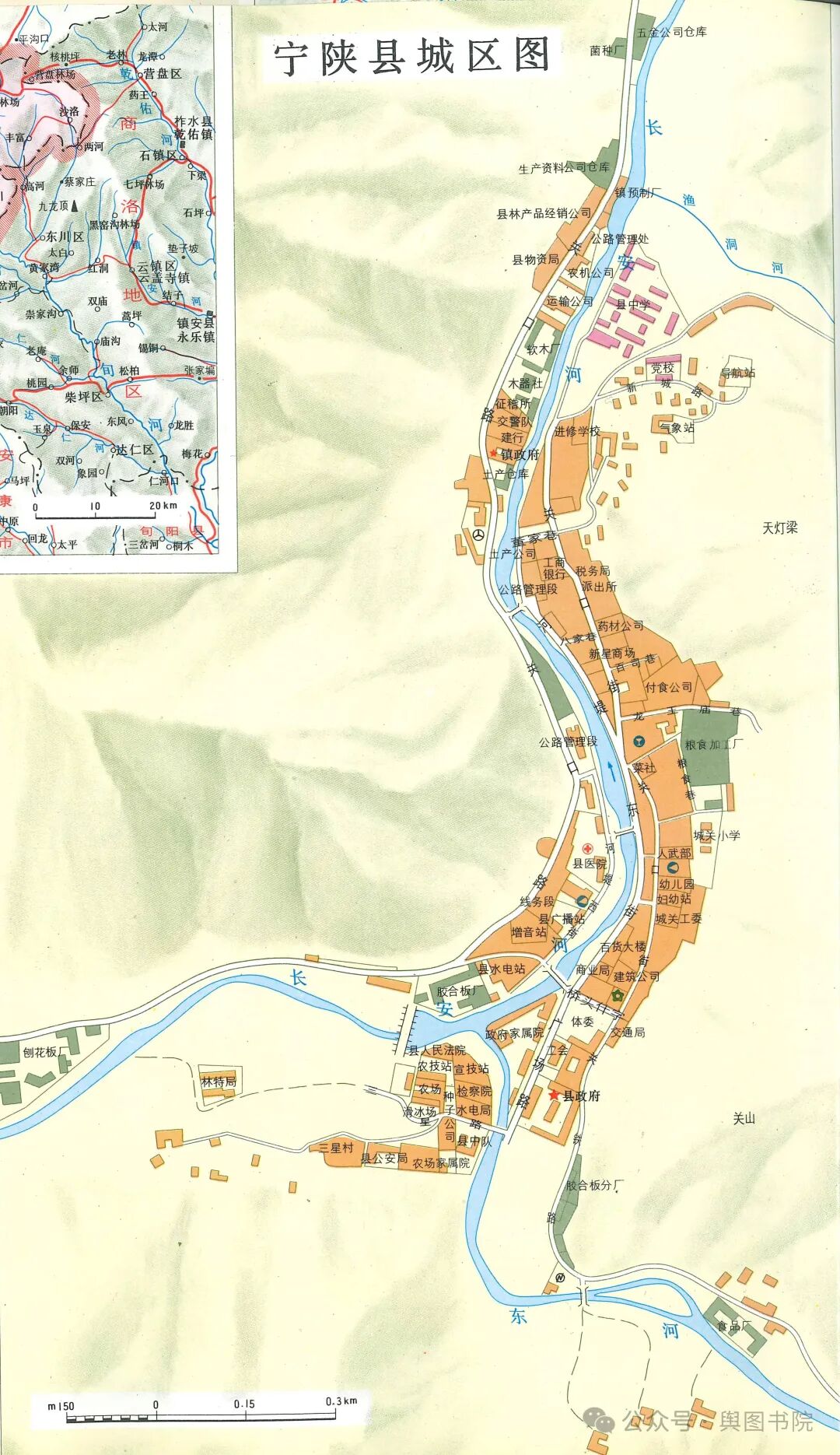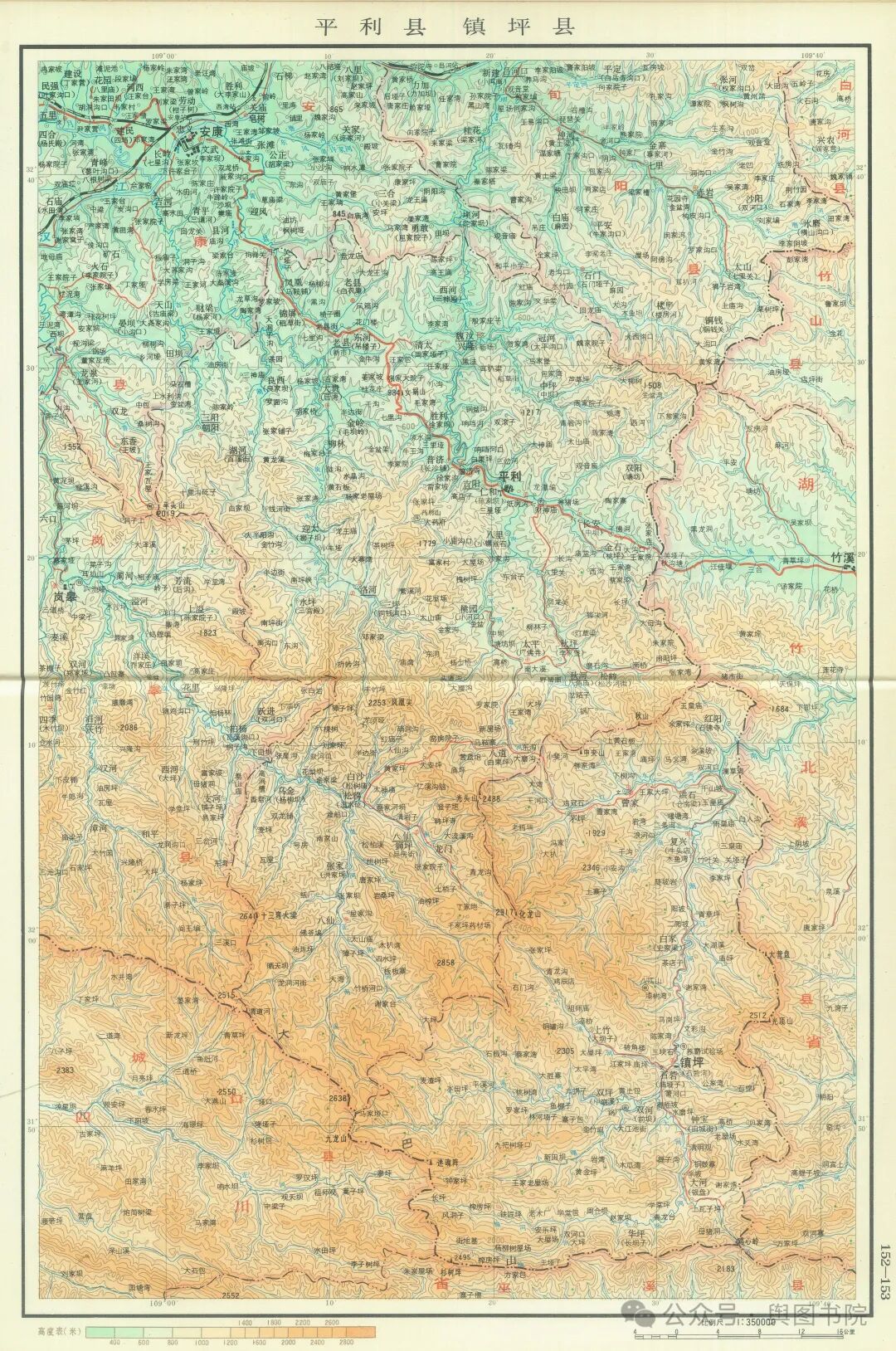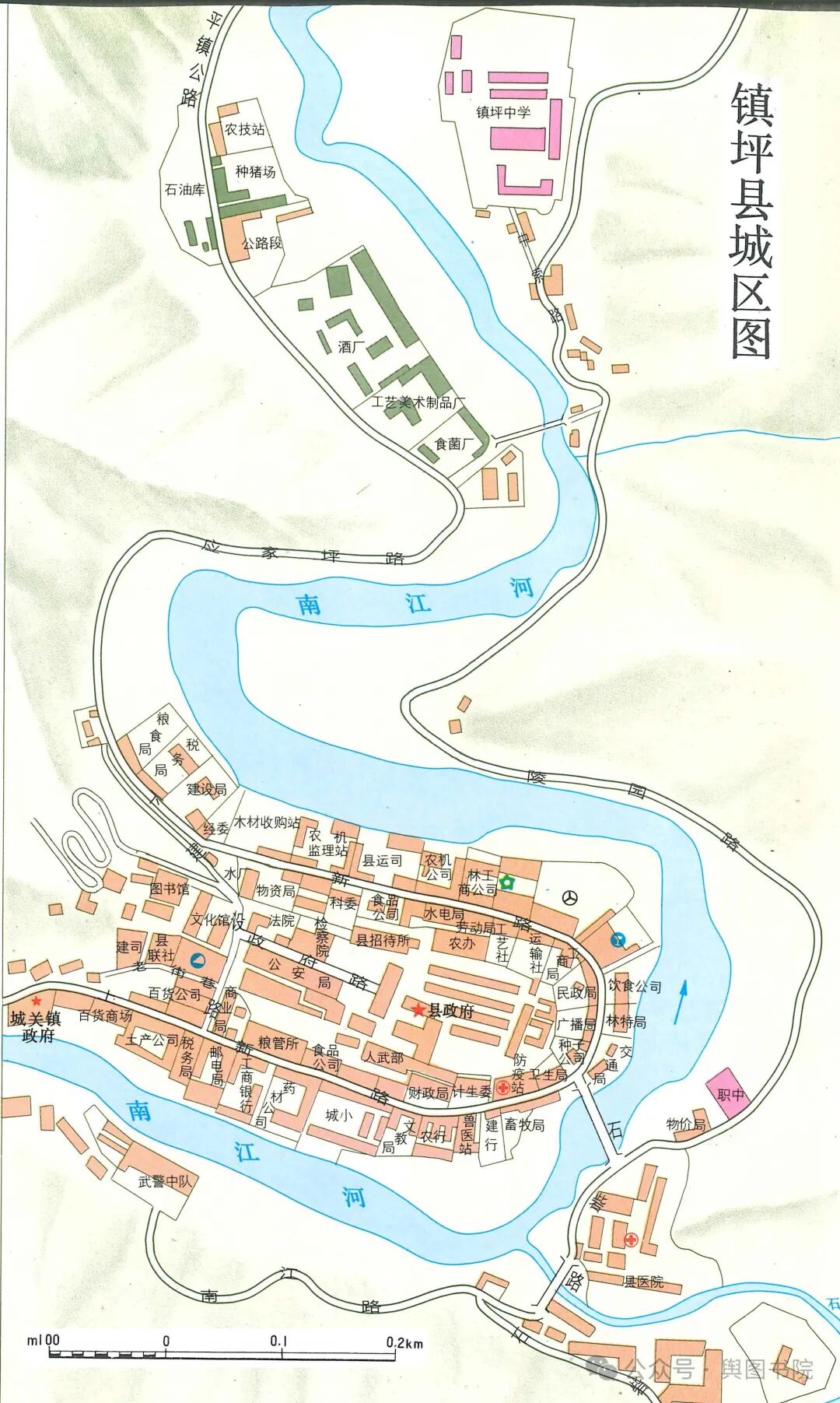 1920年时候,因为中宝镇老镇坪城较为偏远,重新设置的镇坪县在石寨河安家。但是不久县城又迁往路途更近且位于山脚下的牛头店,一直到1954年,县城才重新迁回石寨河。至此,石寨河这个村镇完成了逆袭。不过这里空间狭小,上图比例尺可以看出,城市纵深只有200米,这是中国除了边疆地区以外最小的城市。