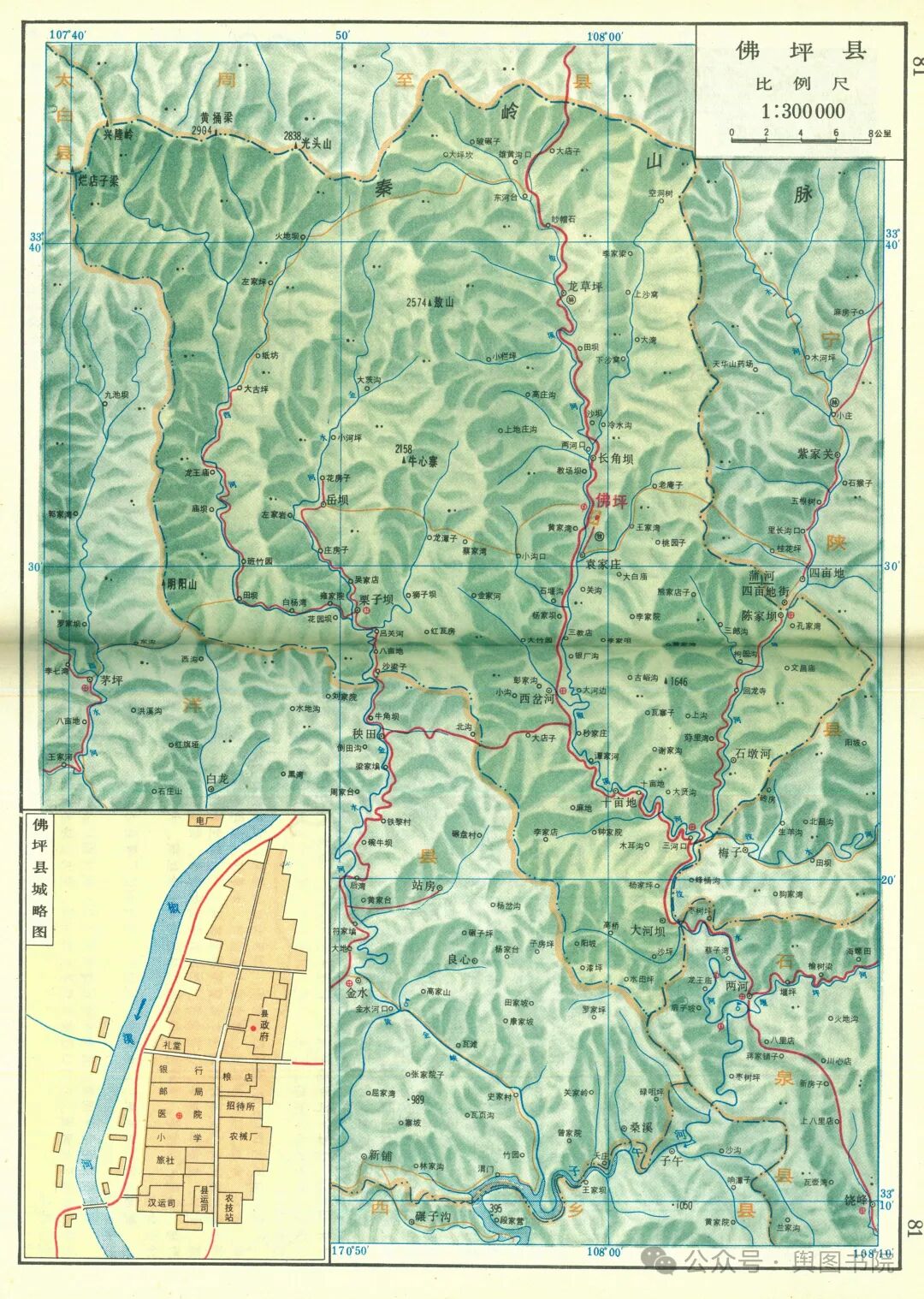 从地图还可以看出,从佛爷坪到袁家庄,直线距离也有90公里,而且地跨秦岭北坡到南坡,佛坪也是陕南近代以来最远的一个地名迁移。