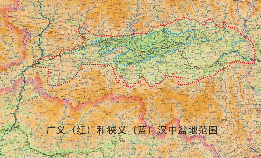 (汉中盆地范围示意图,这里更像微缩的四川盆地,更多内容戳链接:孪生中国——迷你版“四川盆地”)