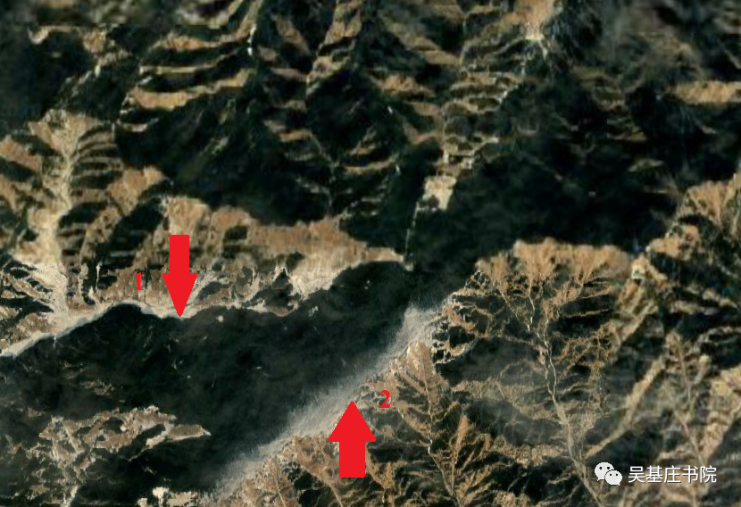 第三,判断阴阳坡。通过卫星图的光影,可以直接判断某处地貌是屏障还是沟壑。对于光影的界限,一定是沿着山脊而不是山谷分布的,山谷的阴阳坡,可以根据植被判断。一般来说,阴坡的植被颜色更深,对于半干旱地区,阴坡往往呈现更茂密的植被。基于这个性质,可以判断界限是山脊还是山谷。