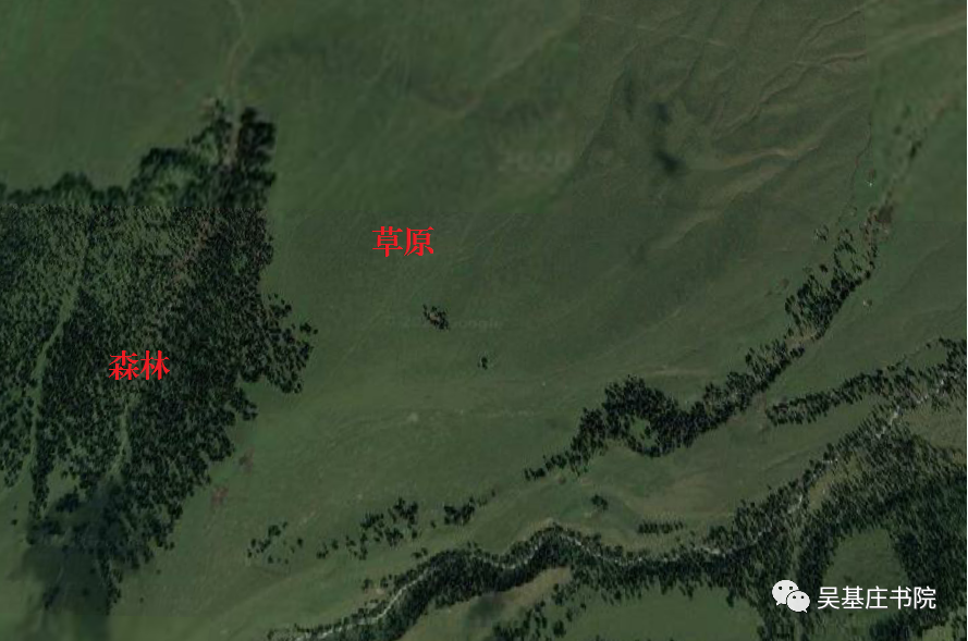 除此之外,有时还要遇到区分森林和草原的问题,在绿色覆盖的地方,我们可以发现,圆滑的绿色,就是草原,突兀较深的绿色,就是森林。