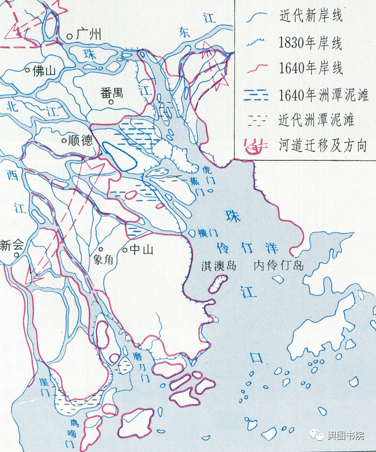 (珠三角海岸线变迁示意图)