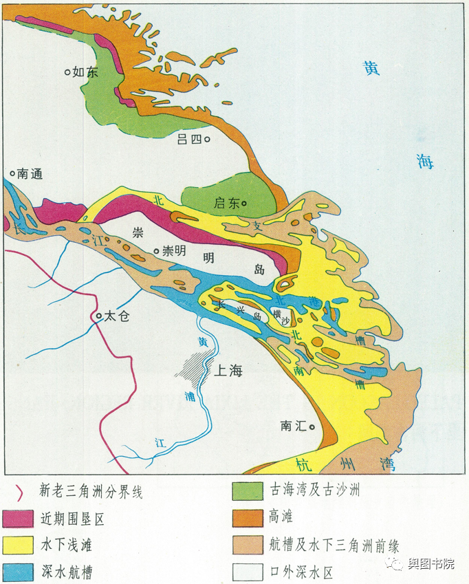 实际上,长三角也是经过漫长堆积,最终形成今天的格局。我们通过上海陆地演变图可以看出,北部崇明岛西端是现代长江三角洲的顶点。长江是岔流入海的河流,河水被崇明岛分成两股。南面那一股水深,北面水浅。解放以后北部围垦和自然沉积,使得北面河道变窄,崇明岛有和北岸连在一起的趋势。通过江苏省海岸线变化图,我们以更大的尺度看,古长江三角洲范围比今天三角洲大很多,从江苏仪征开始,往东绵延4万平方公里,南部的太湖平原也属于古长三角地区。江苏启东附近在清朝时候还是沙洲群,民国以来逐渐形成陆地。更多内容戳链接:舆图纪实——地图纵览长江百年变化