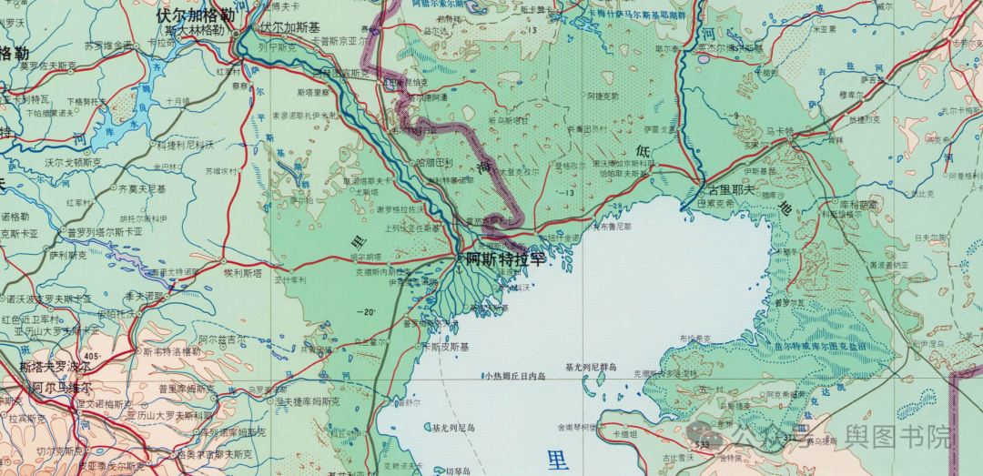 (伏尔加河河口附近地图)