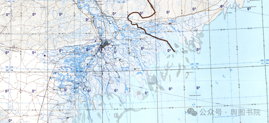 (伏尔加河三角洲地形图,美制)