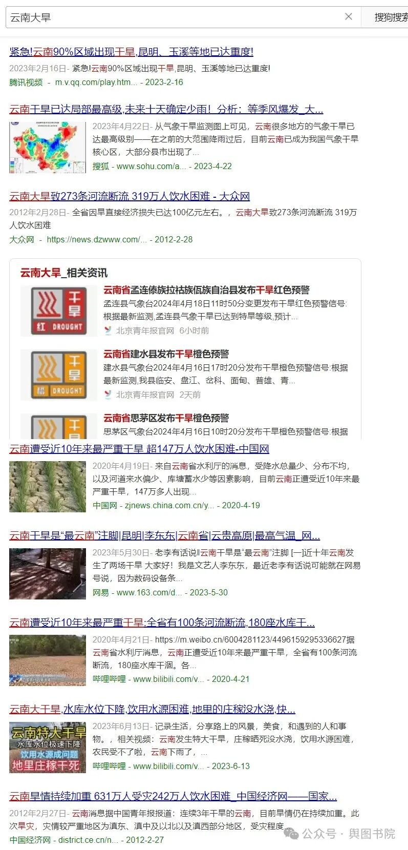 西南江河滔滔不绝将宝贵的淡水倾斜出境的另一面是,西南地区比如云南几乎每年都在经受干旱考验。搜索云南大旱字眼,就能看出每一段干旱都是“史上最严重”。