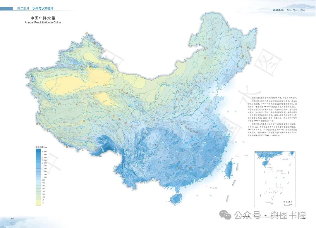 中国降水量主要呈现南多北少的态势,而光热充足的平原主要分布在北方,水地矛盾凸出,加剧了水资源紧缺的局面。从图中还能看出,中国西南地区横断山区附近是我们大陆地区降水丰沛的地方,然而这一区域水资源却大部分流出国境,可谓望水兴叹。
