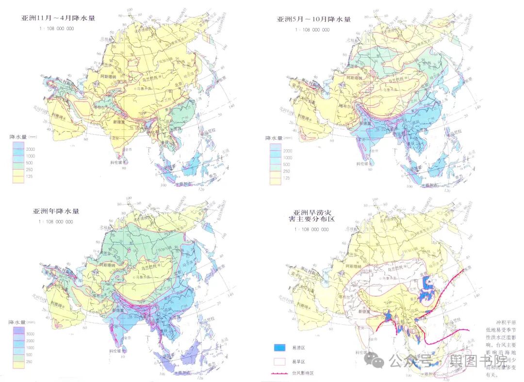(亚洲降水量图,由于径流系数的巨大差异,上下游水资源涵养情况远比图中降水量差异更大)