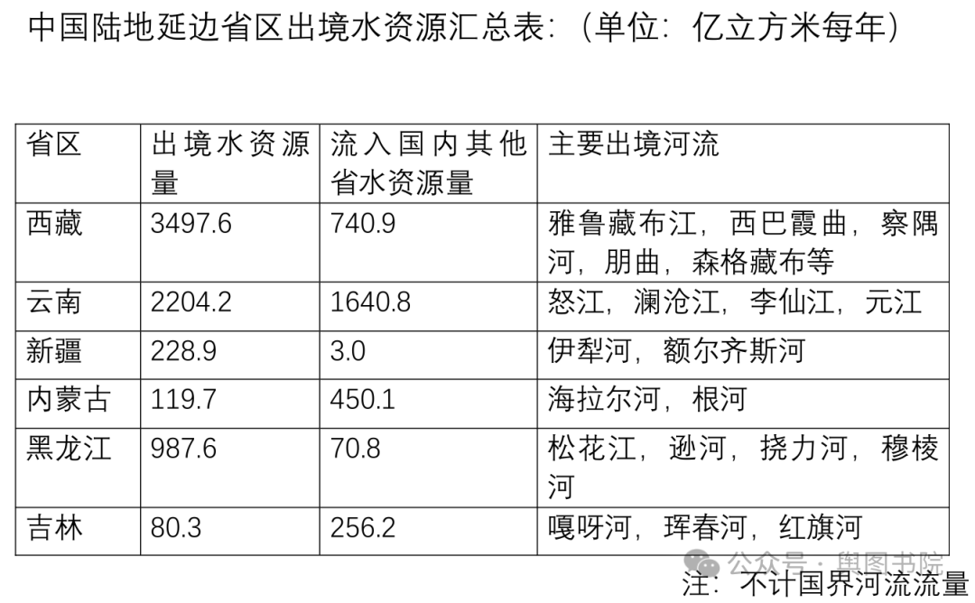上图展示了中国各省出入境水资源情况,直观期间,我们将陆地边境各省情况各省情况汇总到下表: