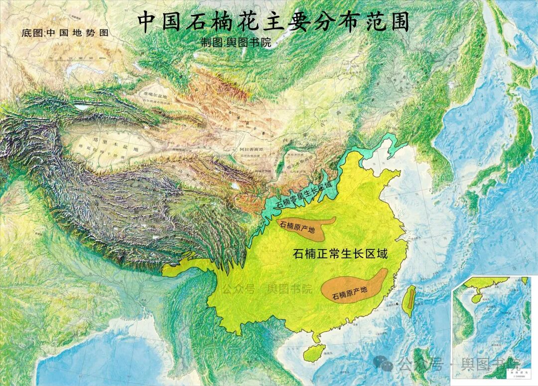 (中国植被图,石楠分布范围远超常绿阔叶树范围)