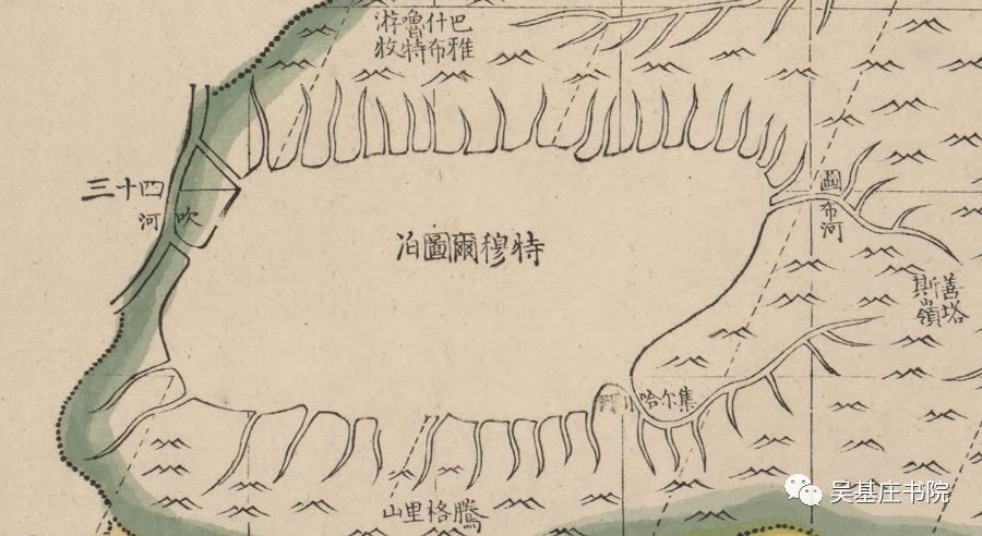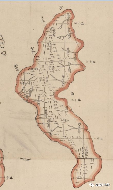 康熙的皇舆全览图,并没有详细绘制新疆西藏的情况,因为那个时候新疆西藏并未归附,那里的情况还不是特别清楚,直到乾隆时候征服葛尔丹,才绘制清楚相应的情况。