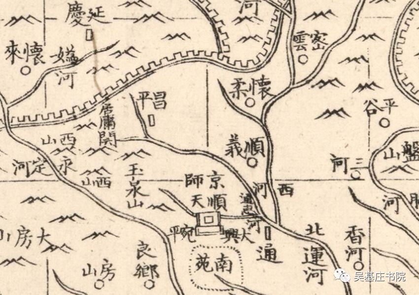 北京周边情况。我们可以清楚看到昌平,延庆,瞬移,怀柔,平谷,顺义,房山,良乡,大兴,宛平等县城。不过这些县城现在都是北京市的地方。