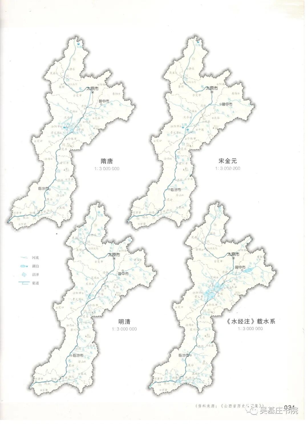 水经注还记载了太原盆地的其他的湖泊,如上图所示。但是这些湖泊,大都因为泥沙淤积而荒废,或者是因为来水减少而干涸,也有的是因为开垦耕地,湖水被排出,湖泊消亡。而曾经水量十分丰沛的汾河,也水分锐减。在枯水期,汾河几近断流,只能维持涓涓细流,很难想象这是曾经水深辽阔,波涛汹涌的大河。这和气候变化以及人类活动密不可分。