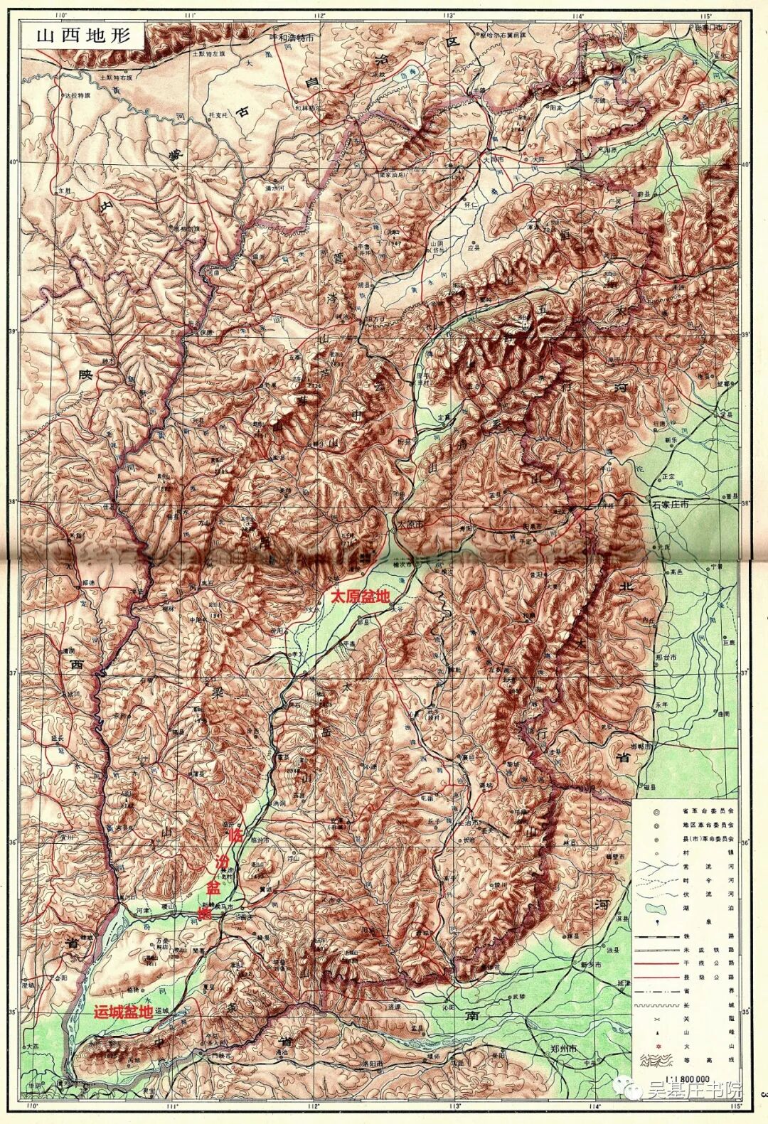 山西省地势图,汾河平原示意图(底图:1973年山西省地图集的序图)