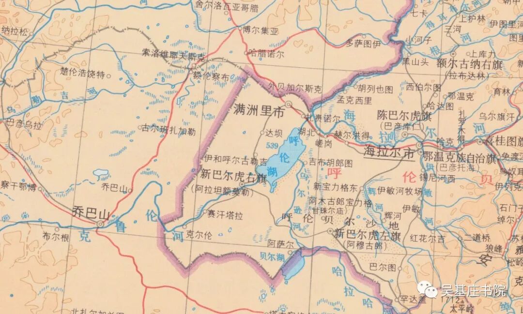 不过,更加有意思的是,60年代以前的图,呼伦湖却被标注为内流湖。如下图所示。