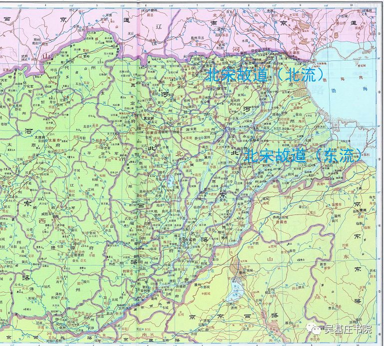 宋前期大致维持东汉以来的河道,称京东故道。后期河道淤高,险象丛生。1048年河决商胡,改道北流,新河夺永济渠至今天津东入海,时称北流,这是黄河的第三次大改道。