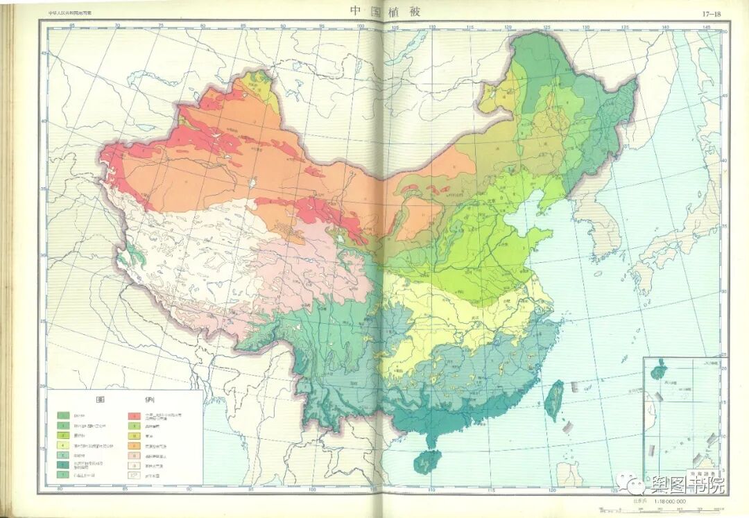 中国是一个悠久的国家,经历5000年的开垦,大部分地方原生植被已经荡然无存。所以中国植被图所表示的植被带,主要是依据气候推测和残存原生植被进行绘制的。植被群落一般比较复杂,植被图选取优势种群群落进行绘制。