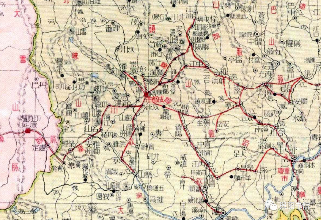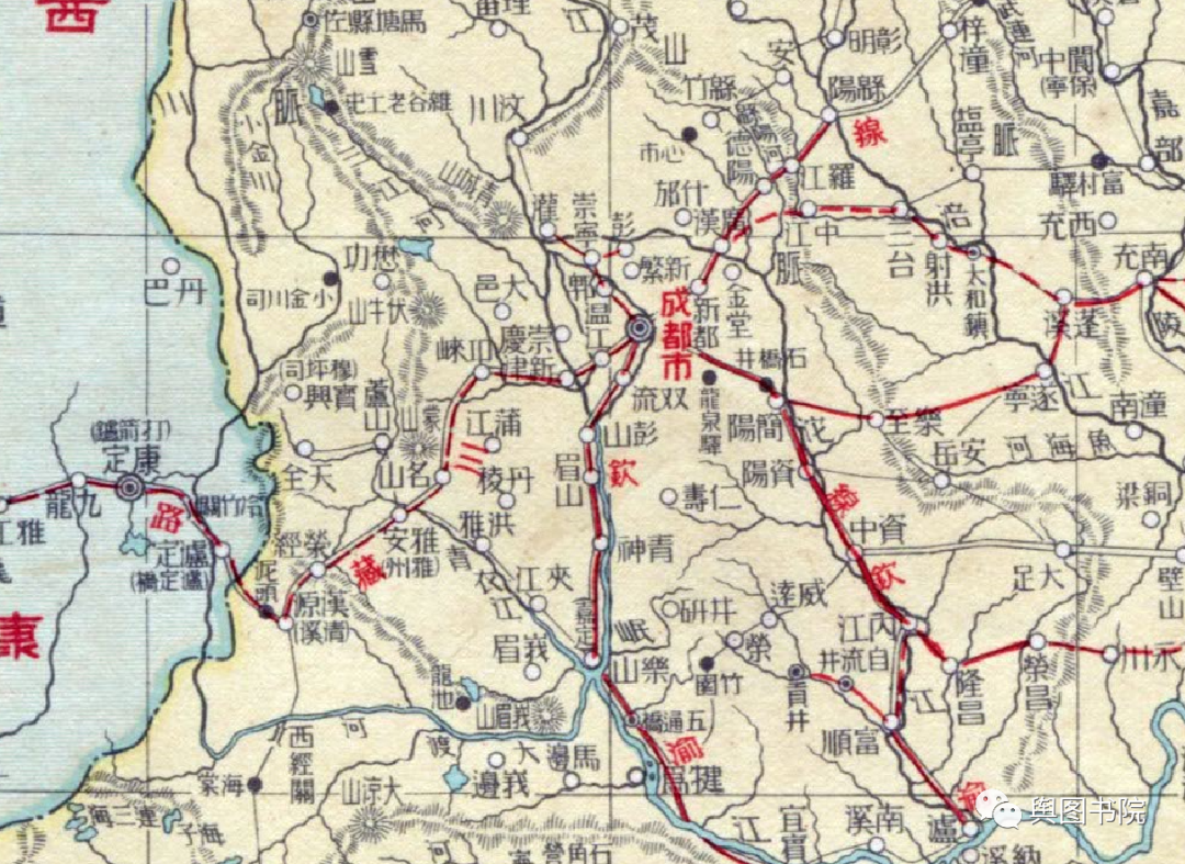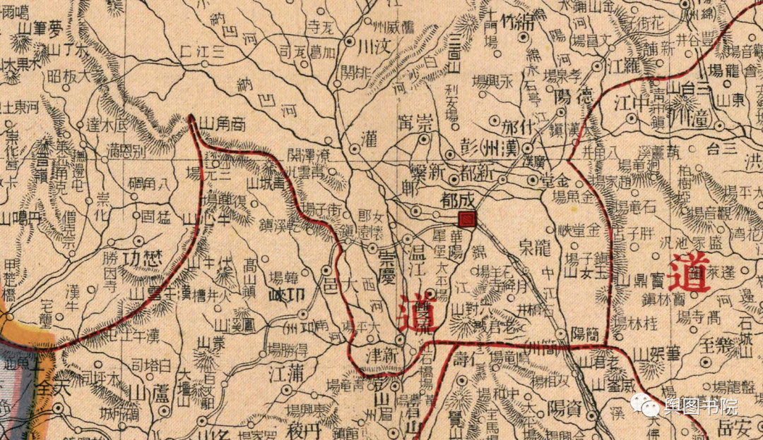 1925年地图,可见成都属于西川道。
